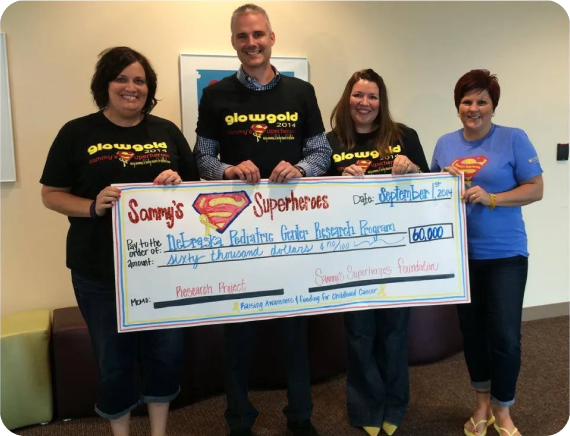 Welcome to Sammy’s Superheroes Foundation, a dedicated nonprofit cancer organization based in Nebraska, where compassion turns into action in the fight against childhood cancer. Our mission is to give every young patient a brighter future by driving awareness, supporting families, and funding groundbreaking research that brings us closer to a cure.